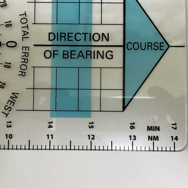 This Portland Plotter is unique to PQ, designed to quickly read off lat/long plots using Admiralty Chart 5089 (the chart we use in the Lookout).